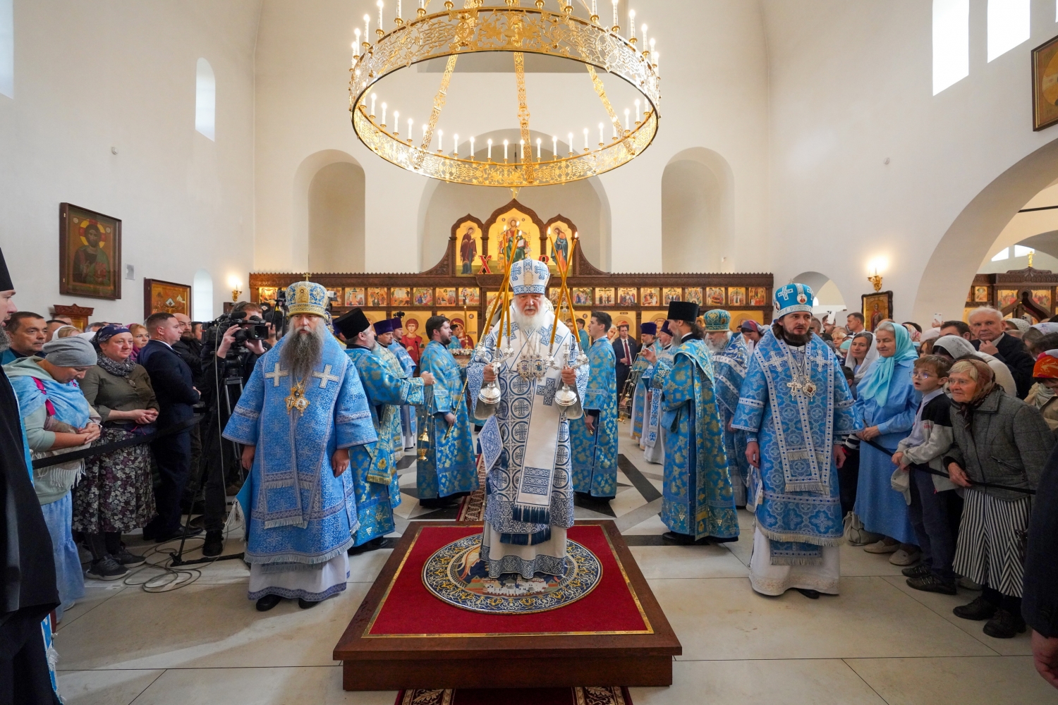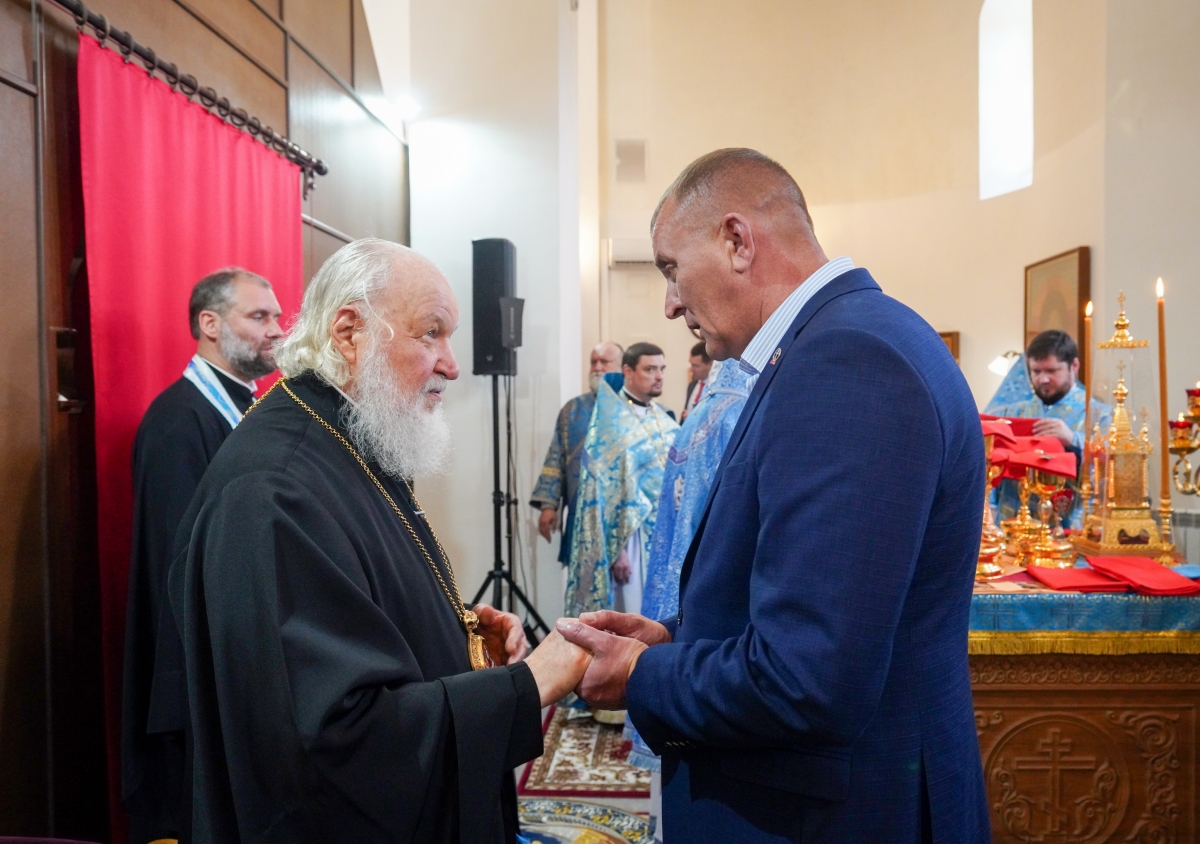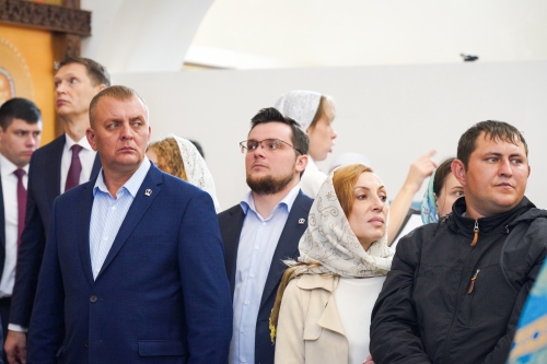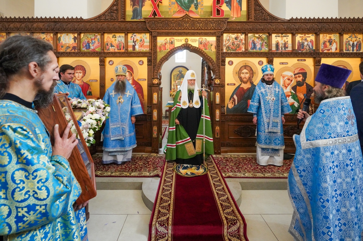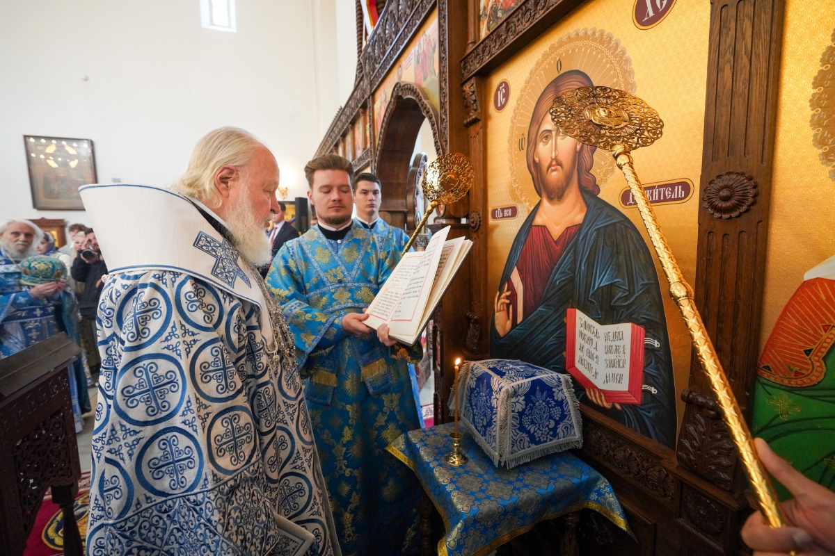 Были освящены два престола: центральный — в честь благоверных князя Петра и княгини Февронии Муромских; южный — в честь преподобных Ксенофонта и супруги его Марии. Также Святейший Владыка освятил 20 антиминсов.