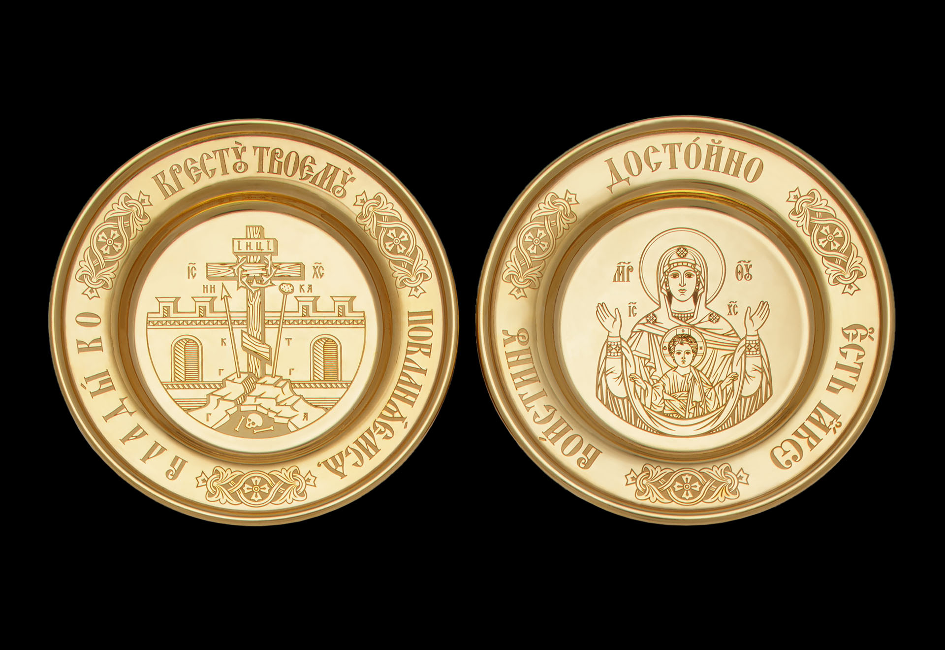 Блюдо под дискос / 2шт - ф100мм / лазерная гравировка / золочение