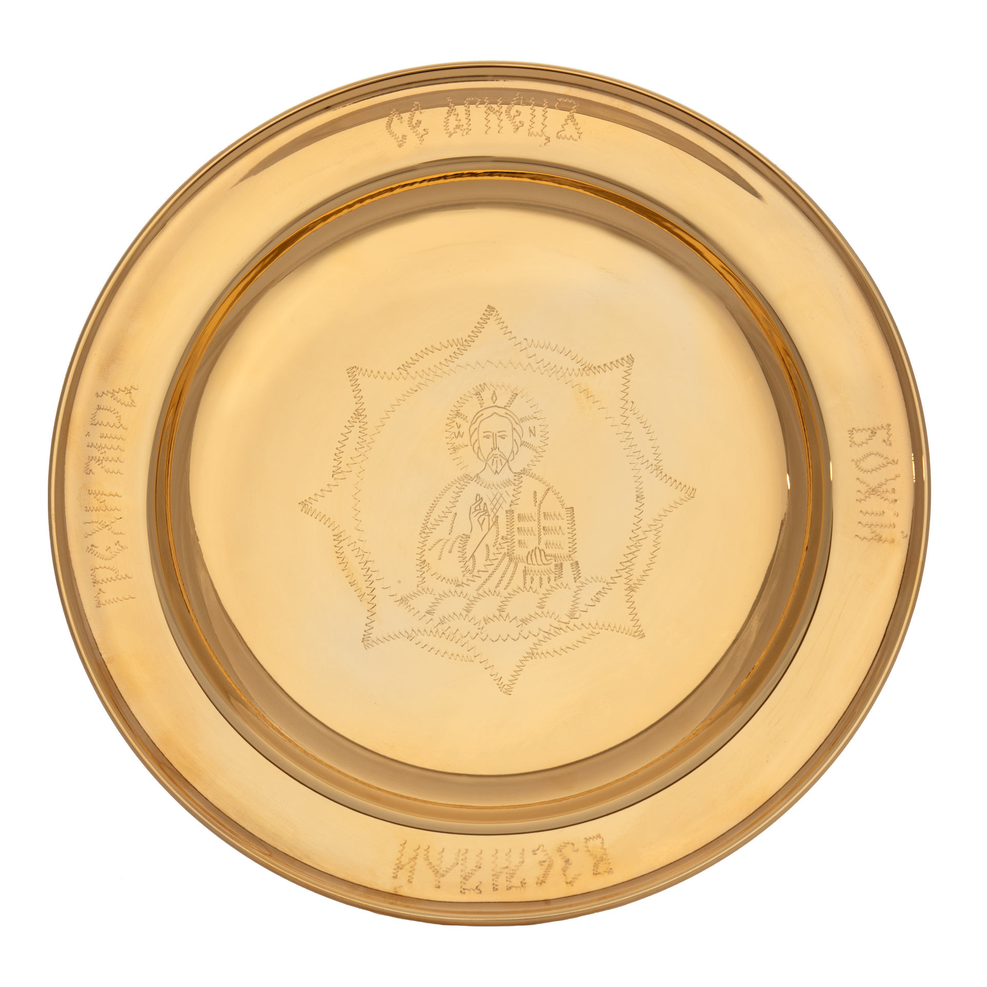 Дискос с поддискосником / ф240мм-конус потира 0,5л / чеканка, ручная гравировка / золочение