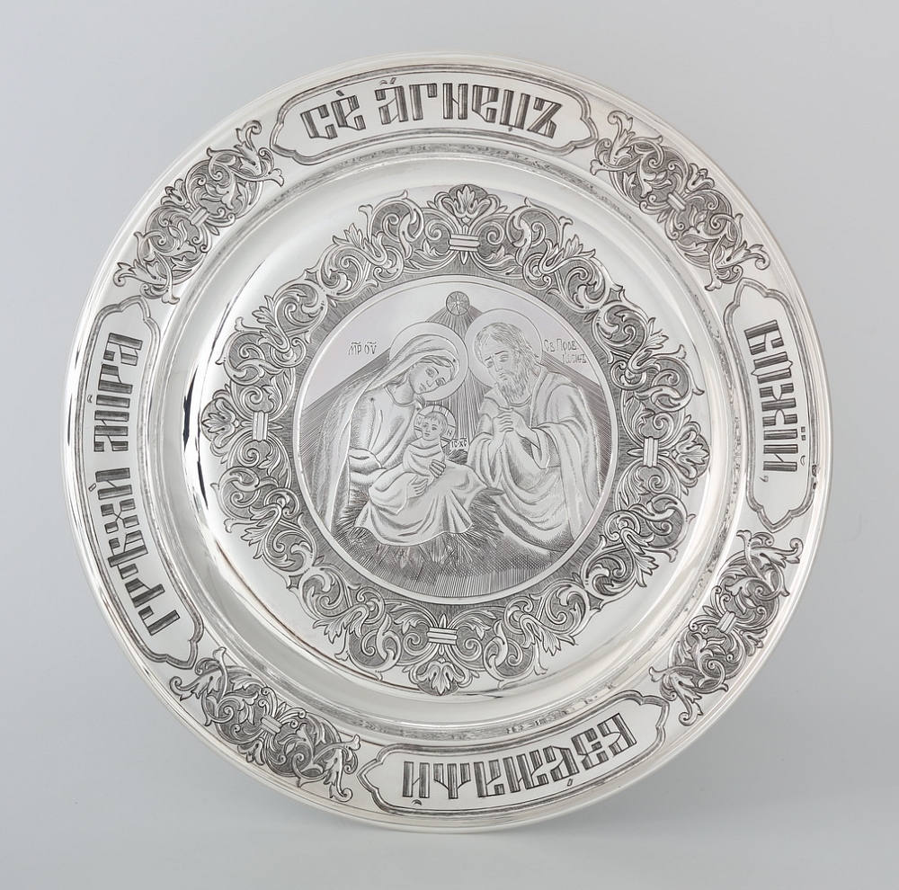 Дискос с поддискосником ручная гравировка, чеканка / ф240мм-потир 0,75л"№4" / серебро (УИН)