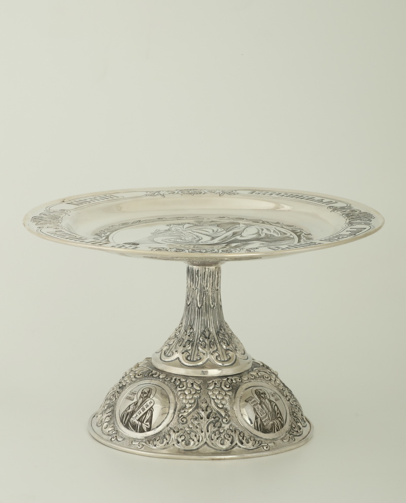 Дискос с поддискосником ручная гравировка, чеканка / ф240мм-потир 1,0л"колос" / серебро (УИН)