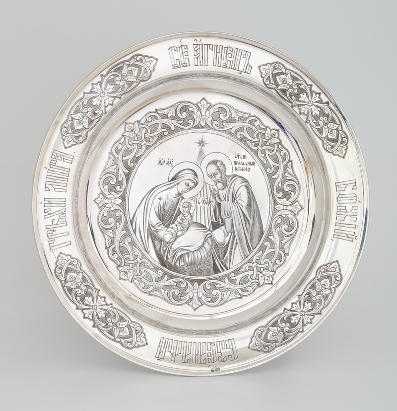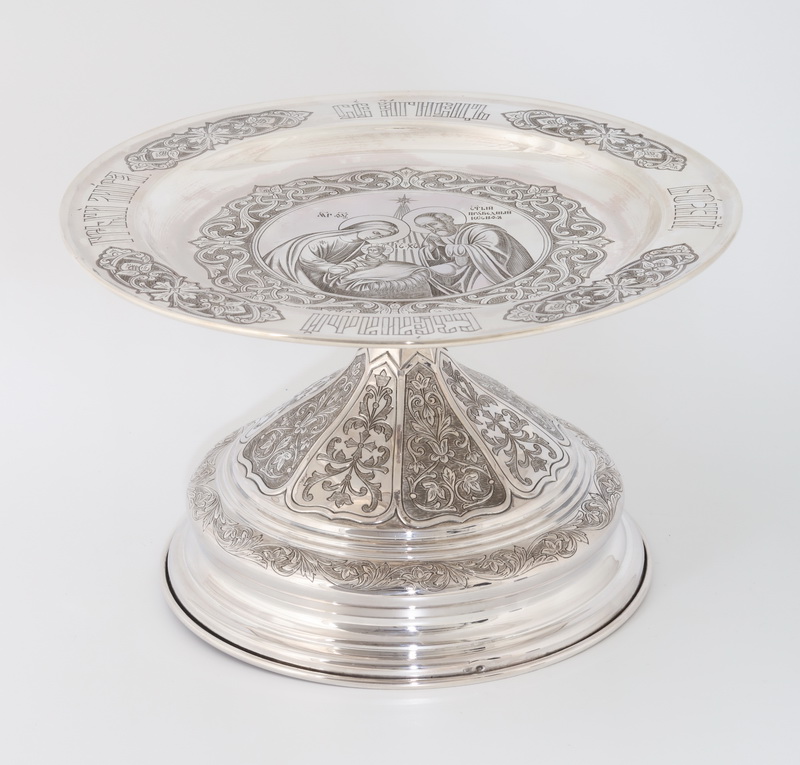 Дискос с поддискосником ручная гравировка, чеканка ложек / ф240мм-потир 1,5л"№11" / серебро (УИН)