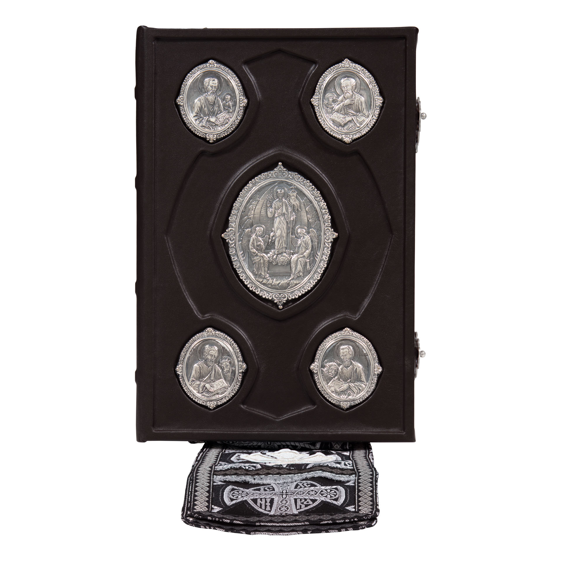 Евангелие 360*240 кожаный оклад г / пл накладки серебрение чернение