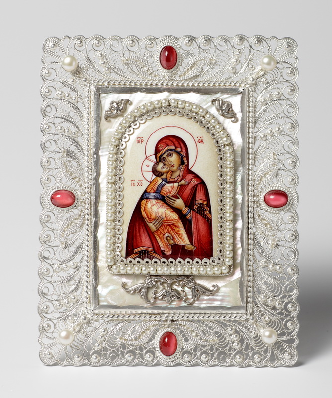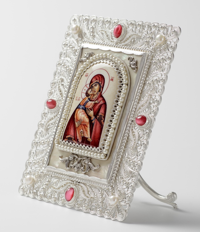 Икона именная №12 финифть, филигрань серебро Владимирская БМ (УИН)