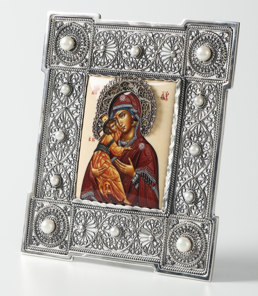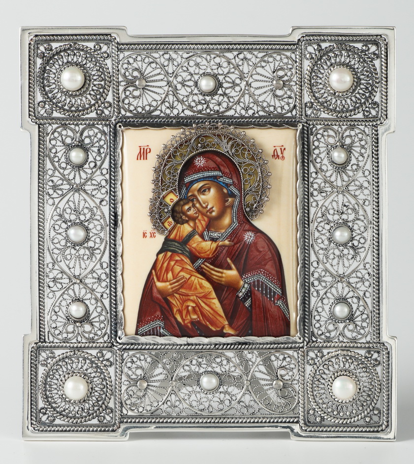 Икона именная №27 деколь, филигрань серебро Владимирская БМ (УИН)
