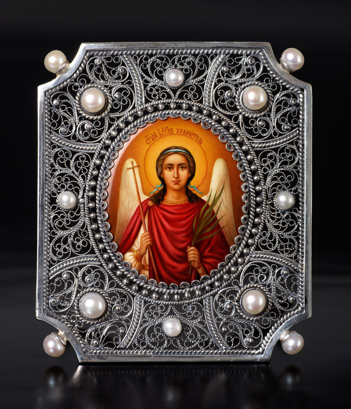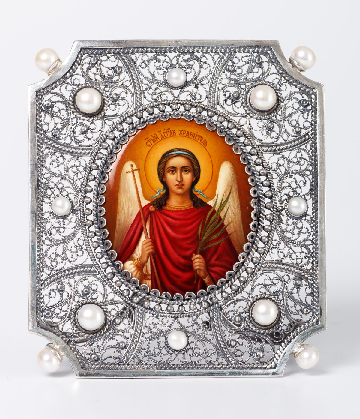 Икона именная №44 живопись, филигрань серебро Ангел Хранитель (УИН)