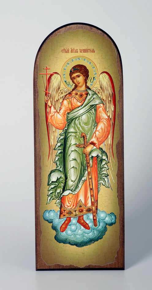 Икона на дереве 18х50 арочная, канвас, упаковка Ангел-Хранитель (ростовой)