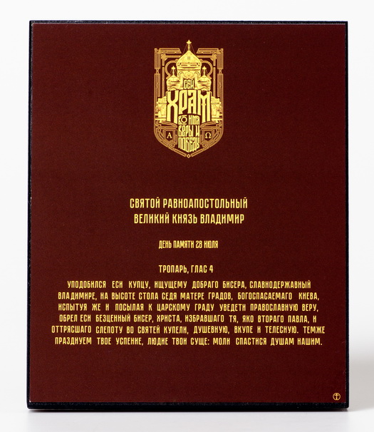 Икона со светлым ликом Святого князя Владимира станет бесценным подарком для представителей военных профессий, а также для тех людей, которые хотят укрепиться в вере и обрести благодатную внутреннюю силу. Святой равноапостольный князь Владимир глубоко почитается среди внутренних войск МВД России, как их Небесный Защитник и Покровитель.