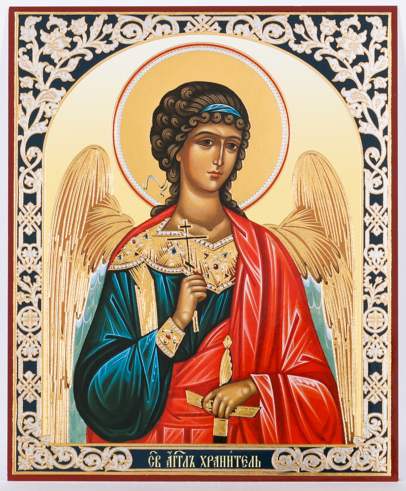 Икона на деревянном планшете 11х13 двойное тиснение Ангел-Хранитель (поясной) №2