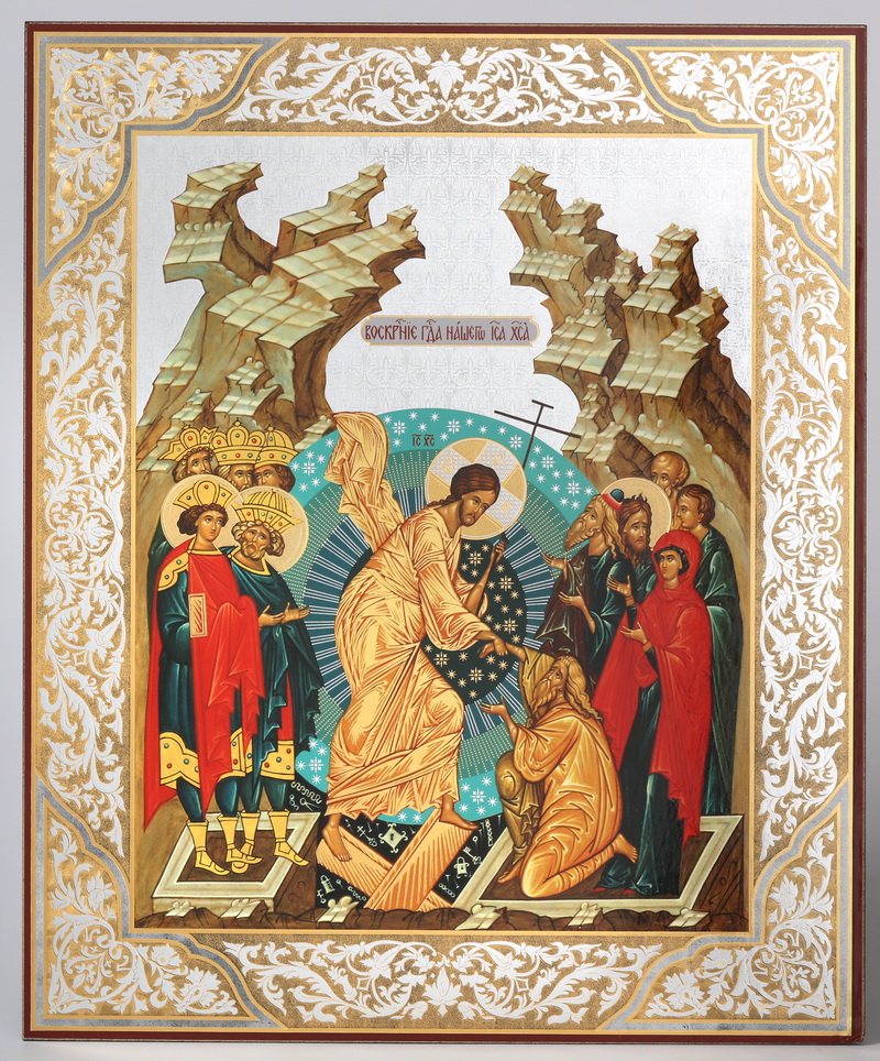 Икона на деревянном планшете 30х40 двойное тиснение, ДСП, ПВХ Воскресение Христово