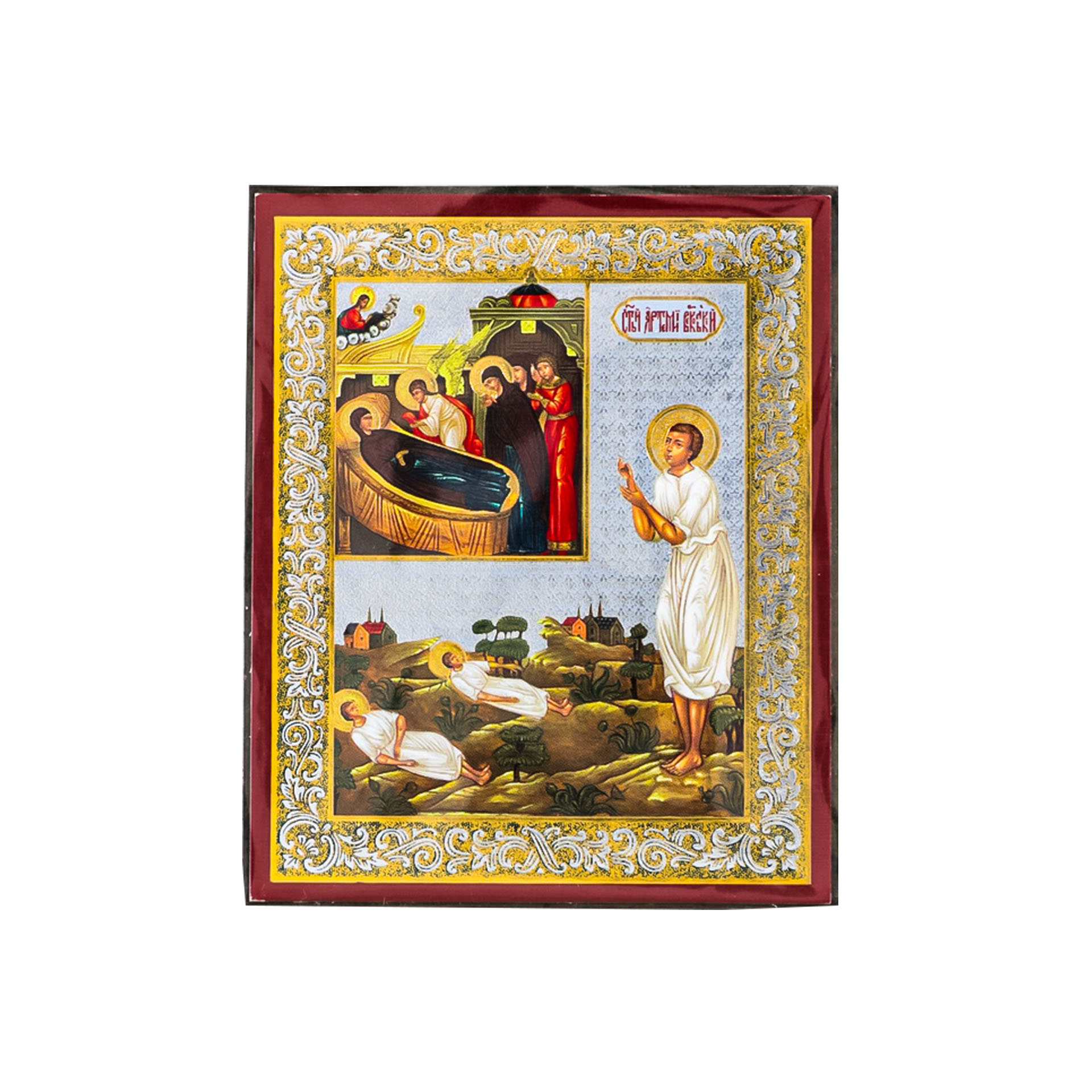 Икона на деревянном планшете 6х9 двойное тиснение, аннотация, упаковка Артемий Веркольский