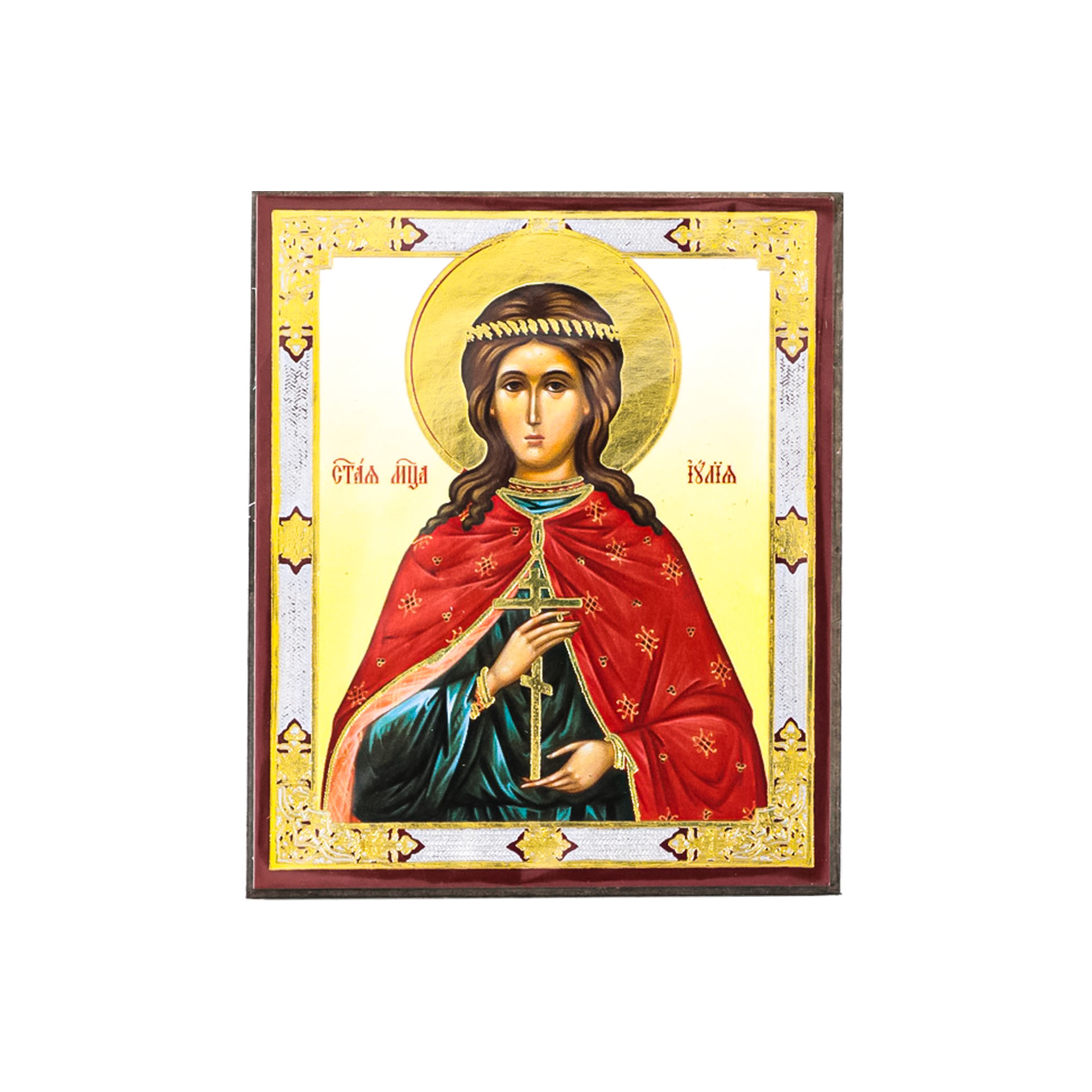 Икона на деревянном планшете 6х9 двойное тиснение, аннотация, упаковка Иулия Карфагенская, дева, мц. (3)