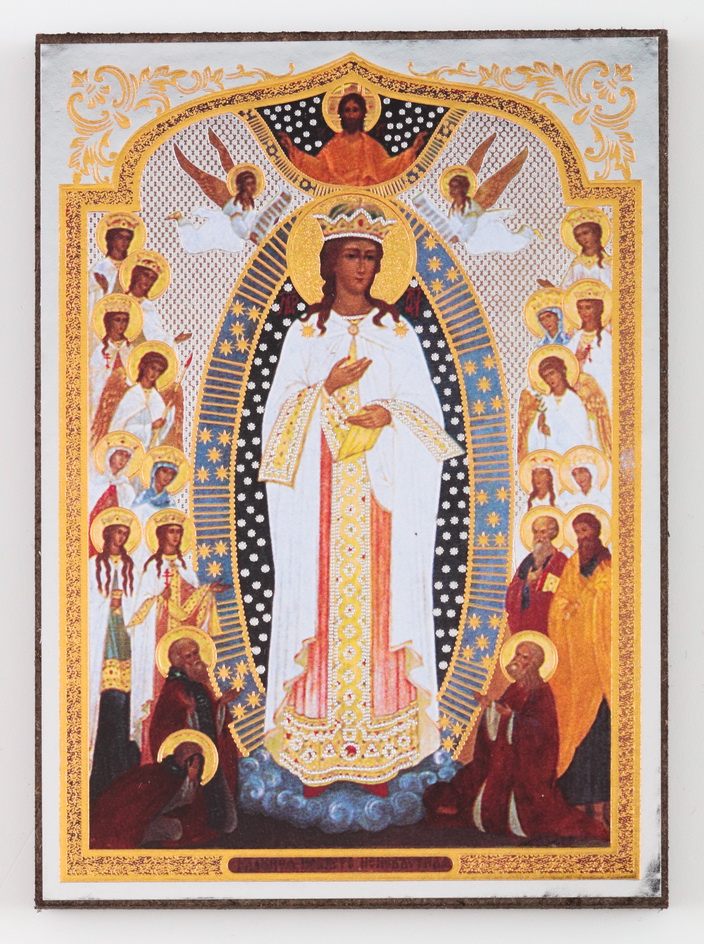 Икона на деревянном планшете 6х9 двойное тиснение Невесто Неневестная