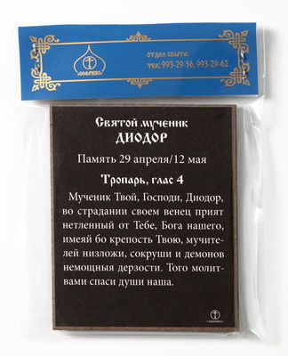 Икона на деревянном планшете 6х9 тиснение, аннотация, упаковка Диодор 2