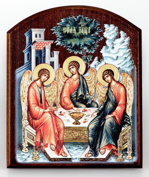 Икона на доске 10х12 объёмная печать, арочная, лак Троица 1
