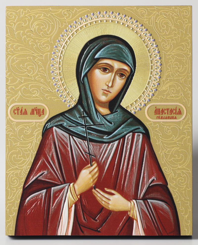 Икона на доске 13х15 объёмная печать, лак Анастасия