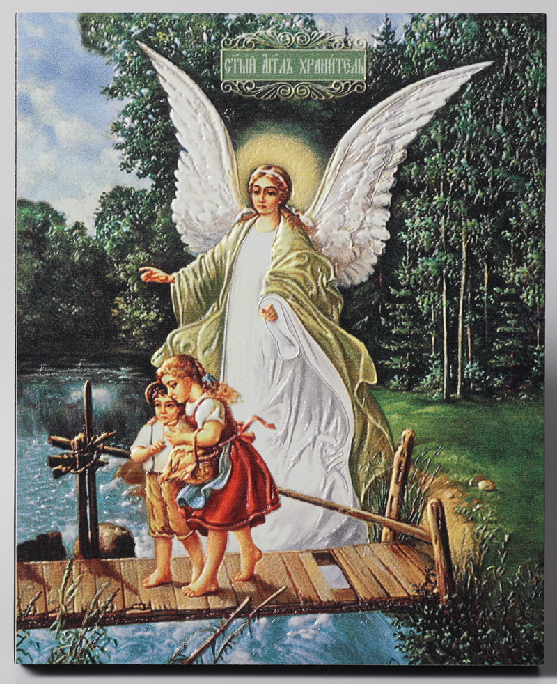 Икона на доске 13х15 объёмная печать, лак Ангел Хранитель 1