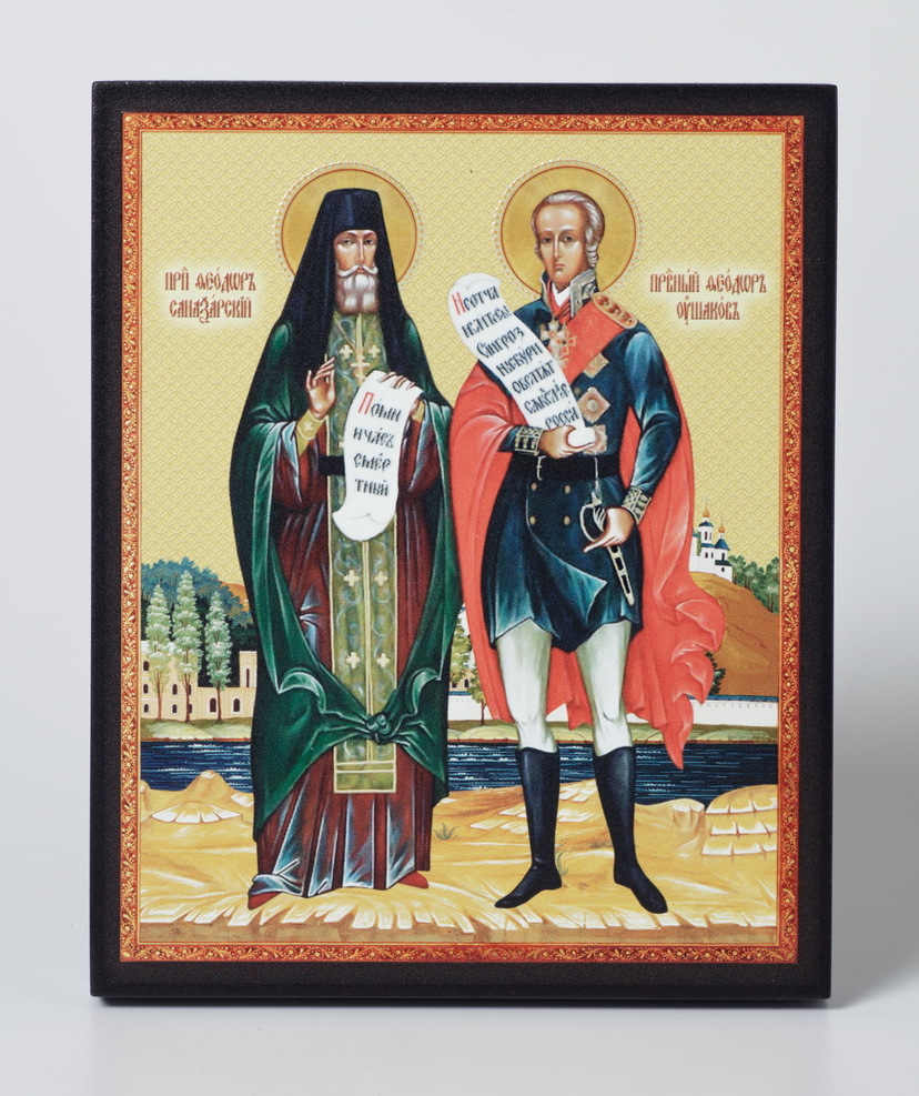 Икона на доске 13х15 объёмная печать, лак Феодор Ушаков и Феодор Санаксарский
