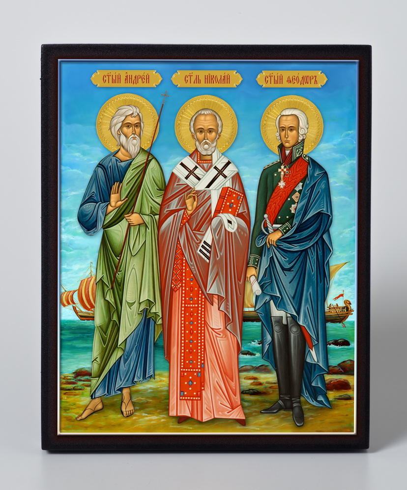 Икона на доске 13х15 объёмная печать, лак Покровители флота Российского 2