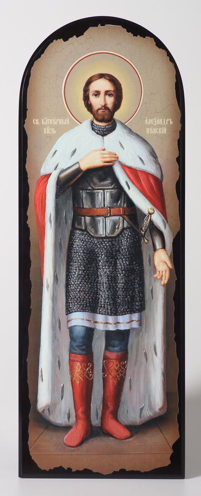 Икона на МДФ 18х50 арочная, объёмная печать, лак Александр Невский