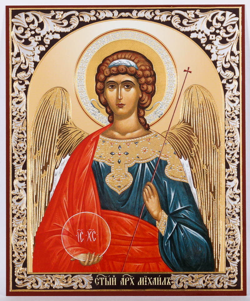 Икона на оргалите №1 11х13 двойное тиснение Михаил Архангел (поясной) 2