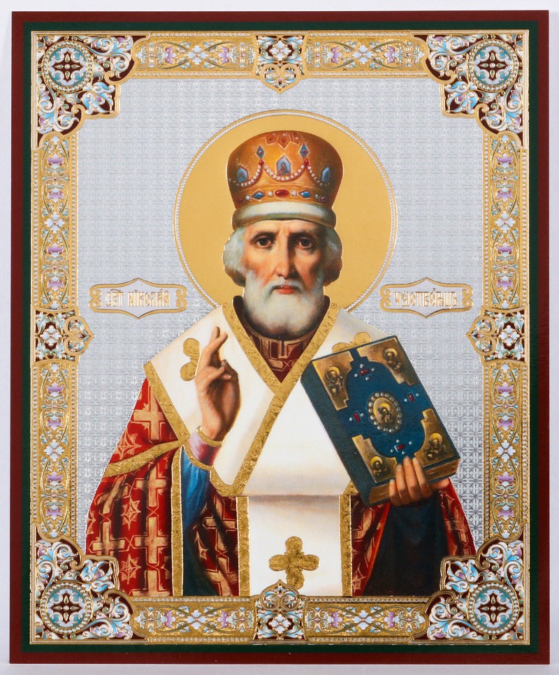 Икона на оргалите №1 11х13 двойное тиснение Николай Чудотворец 14