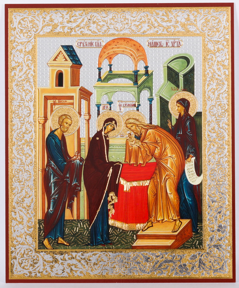 Икона на оргалите №1 11х13 двойное тиснение Сретение Господне