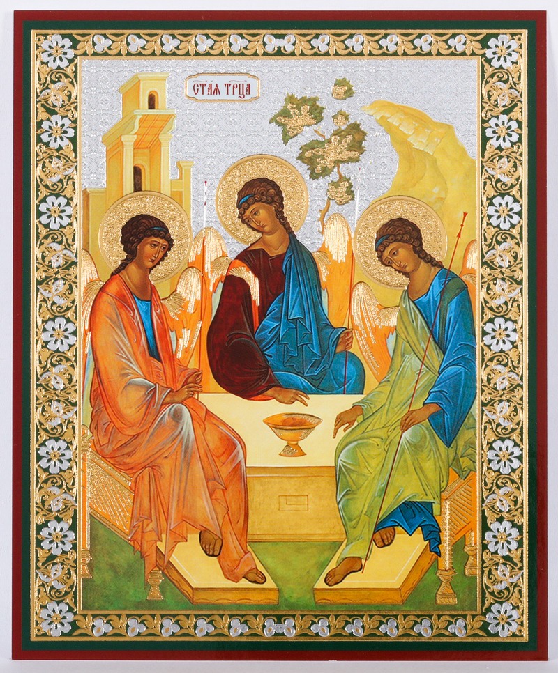 Икона на оргалите №1 11х13 двойное тиснение Троица (Рублевская)