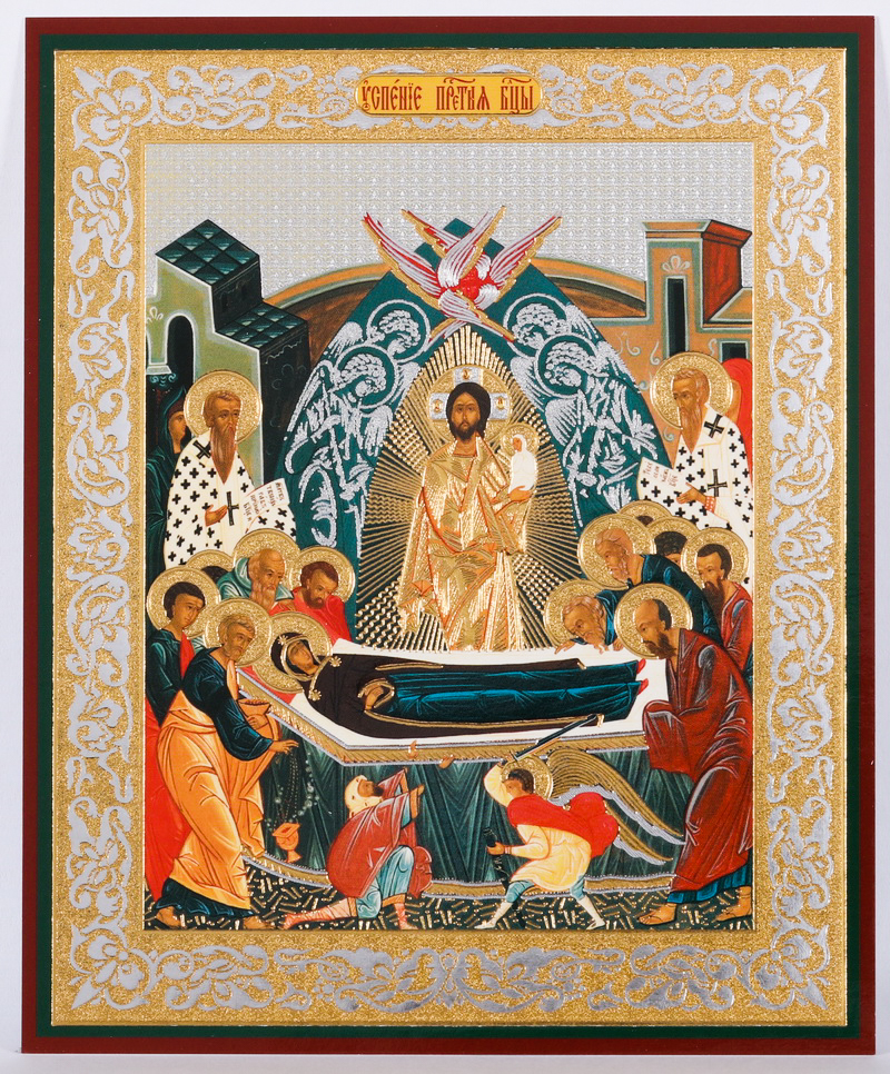 Икона на оргалите №1 11х13 двойное тиснение Успение Богородицы