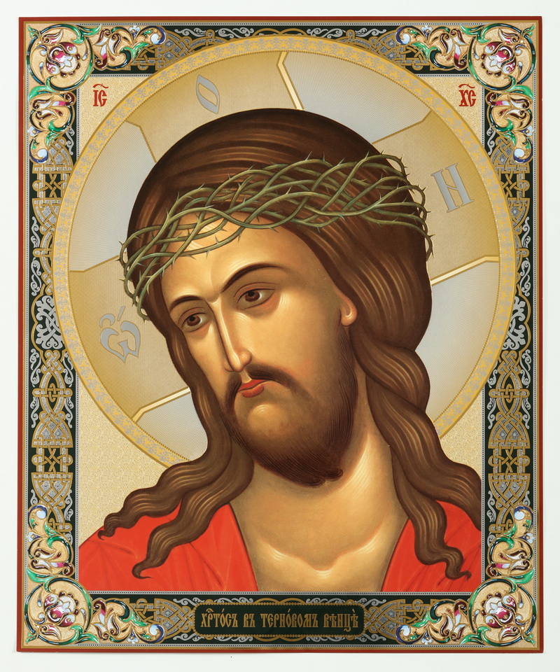 Икона на оргалите №1 30х40 двойное тиснение Спас в терновом венце №4