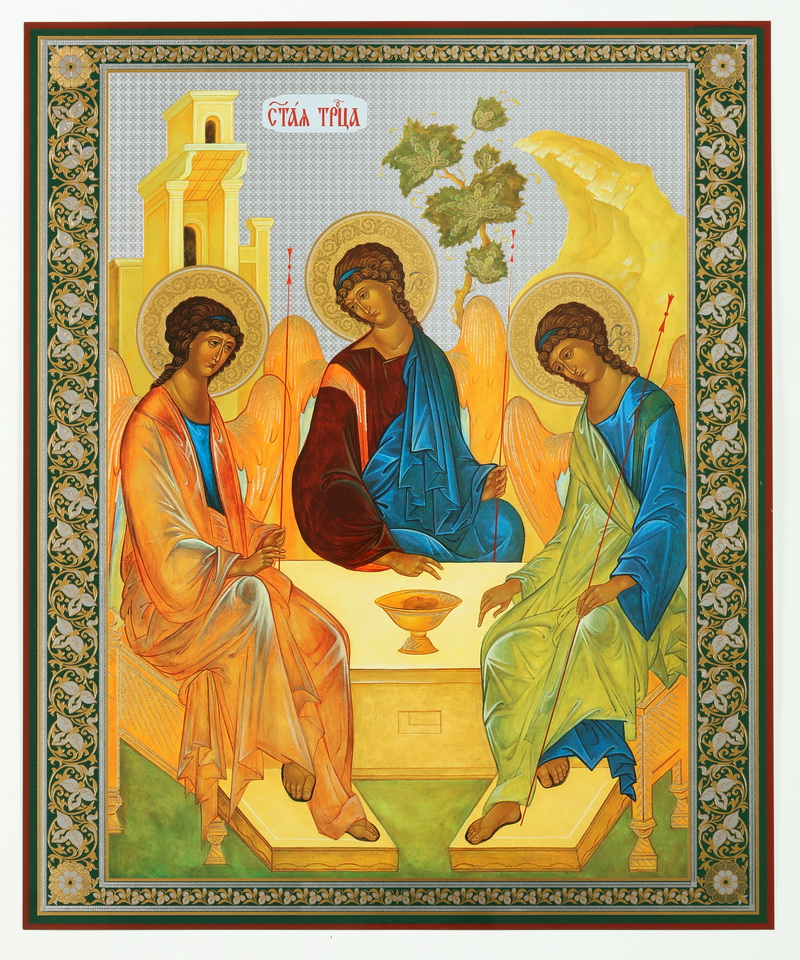 Икона на оргалите №1 30х40 двойное тиснение Троица (Рублевская)