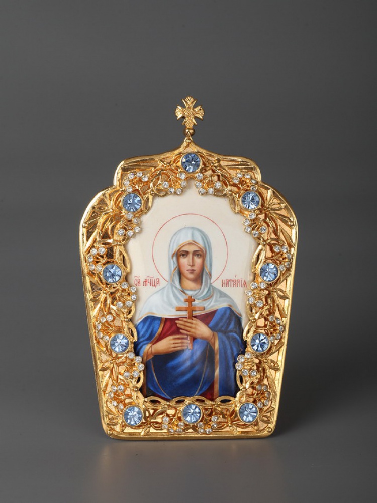 Икона настольная №12 серебро финифть / золочение / Наталия (УИН)