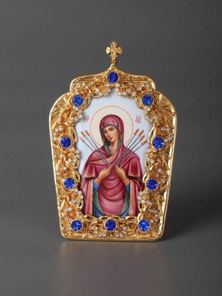 Икона настольная №12 серебро финифть / золочение / Семистрельная БМ (УИН)
