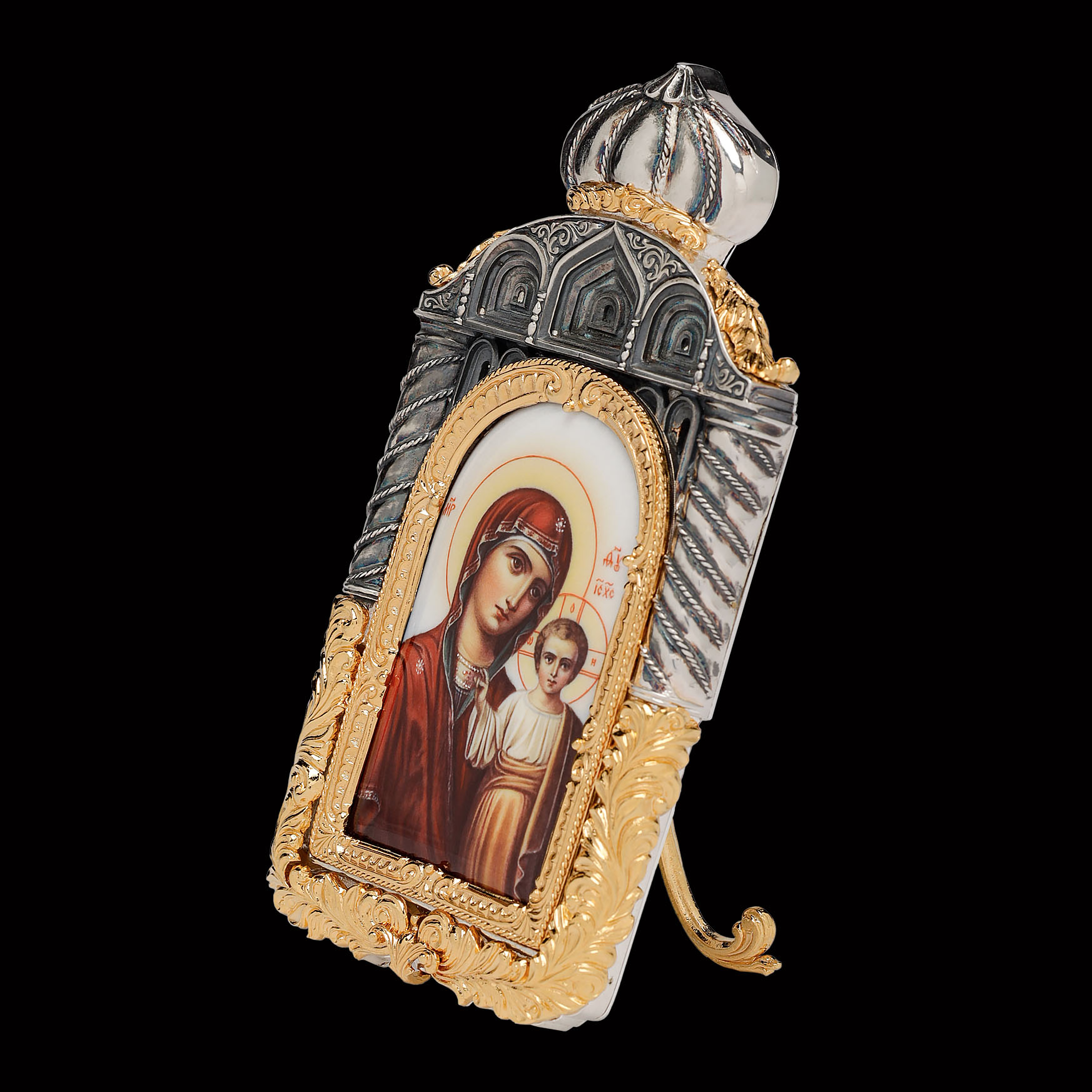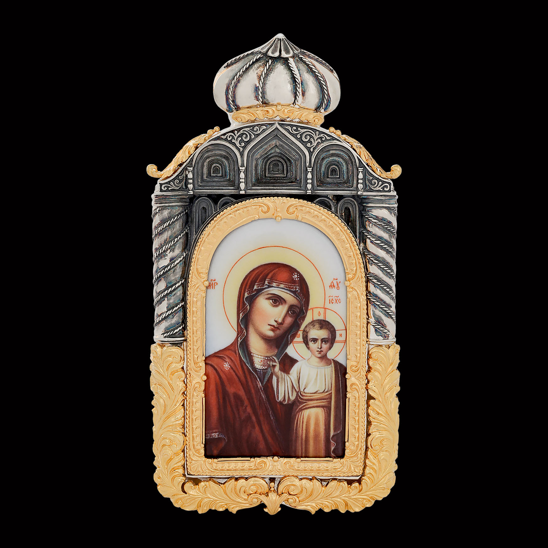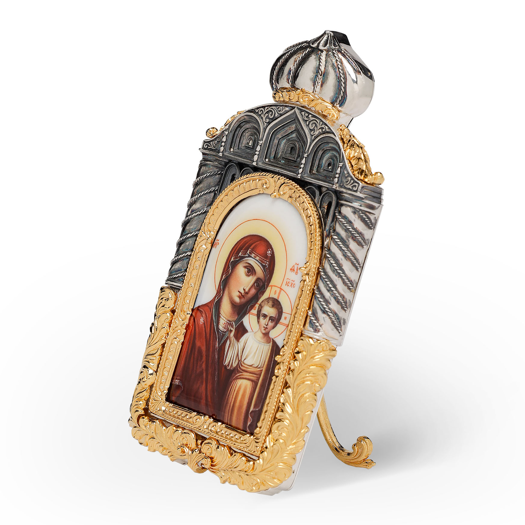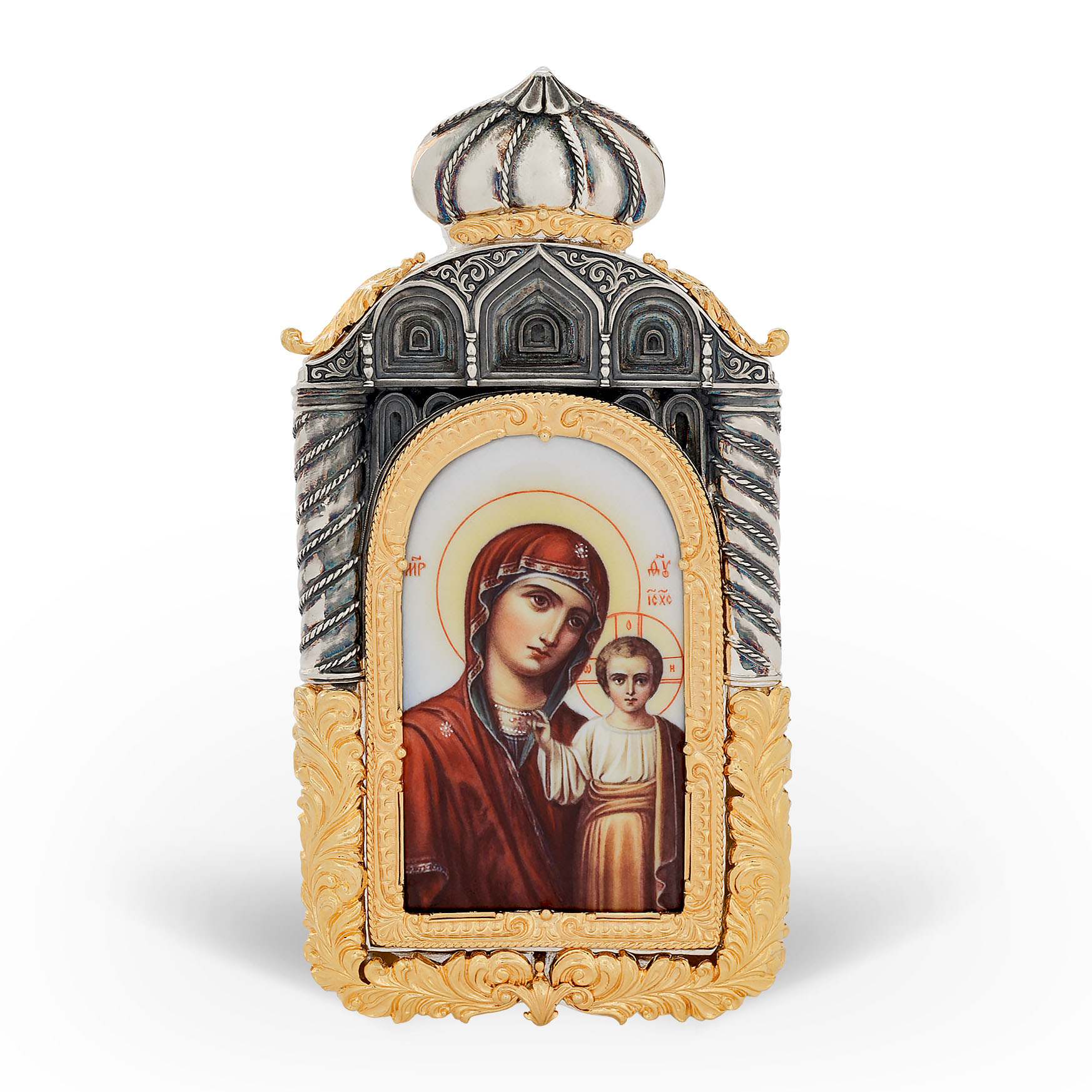 Икона настольная №135 деколь / золочение, серебрение / Казанская БМ