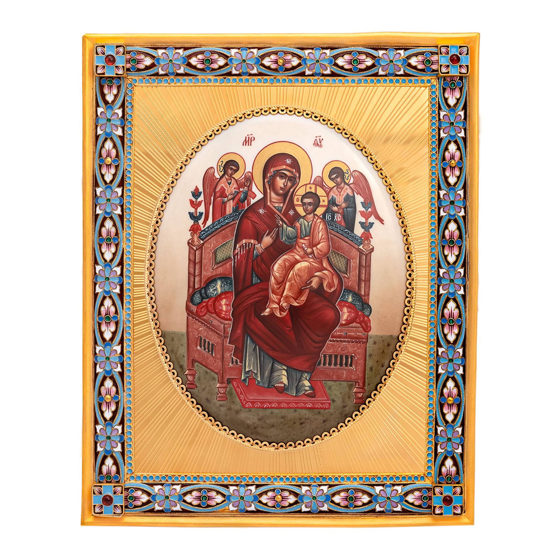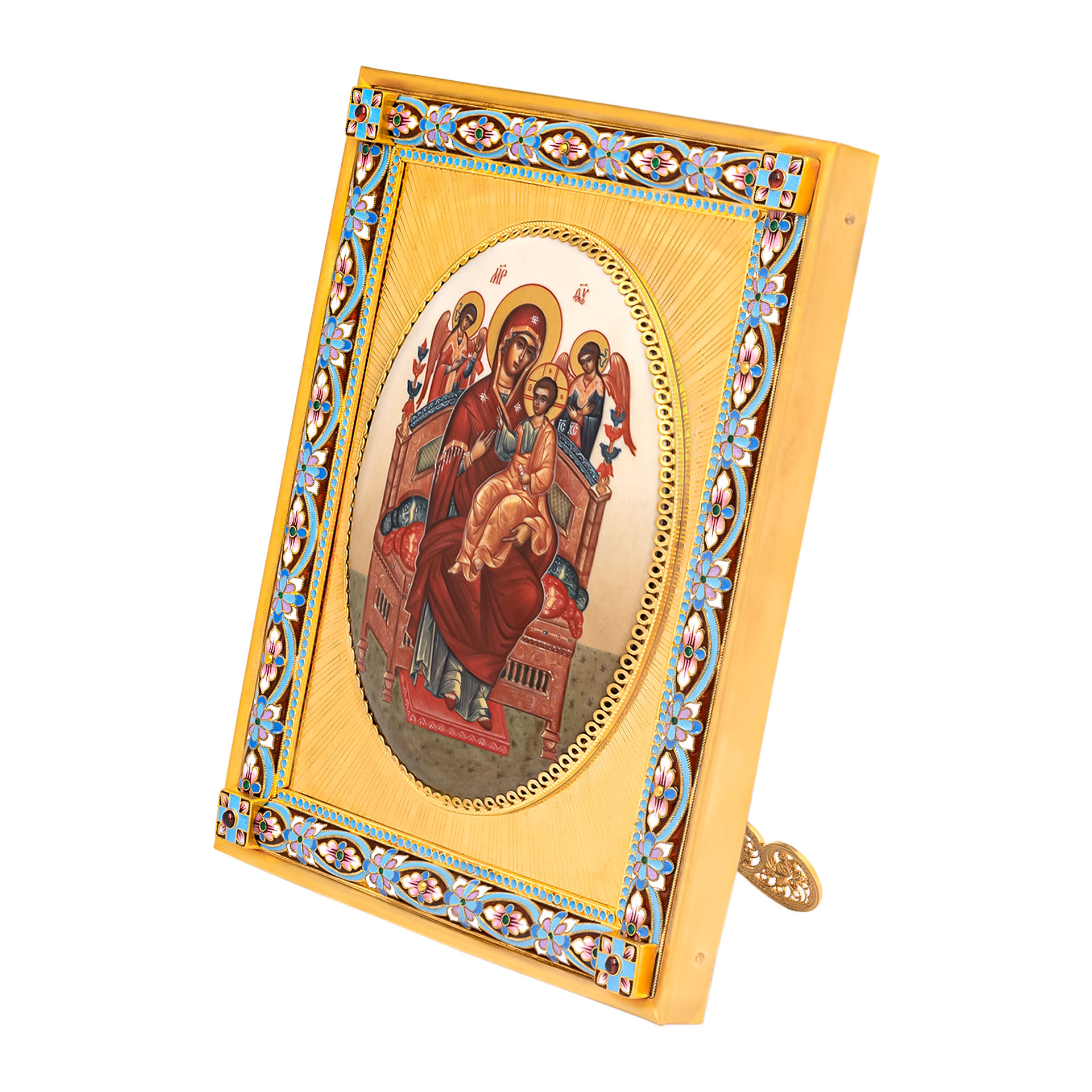 Икона настольная №140 серебро деколь, филигрань.роспись.гильяш / золочение / Всецарица (УИН)