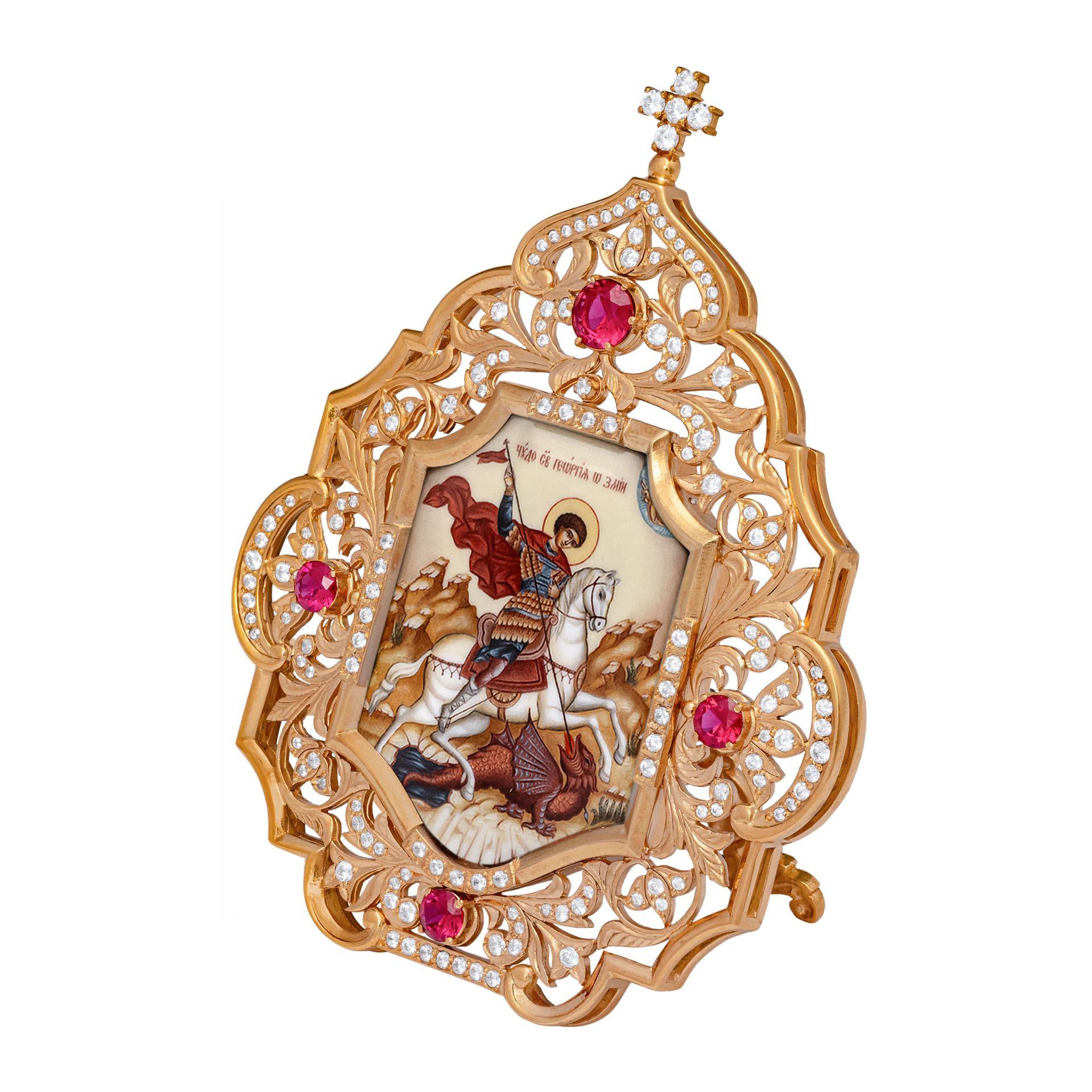 Икона настольная №152 / Фианиты серебро деколь / золочение / Чудо Георгия о змие (УИН)