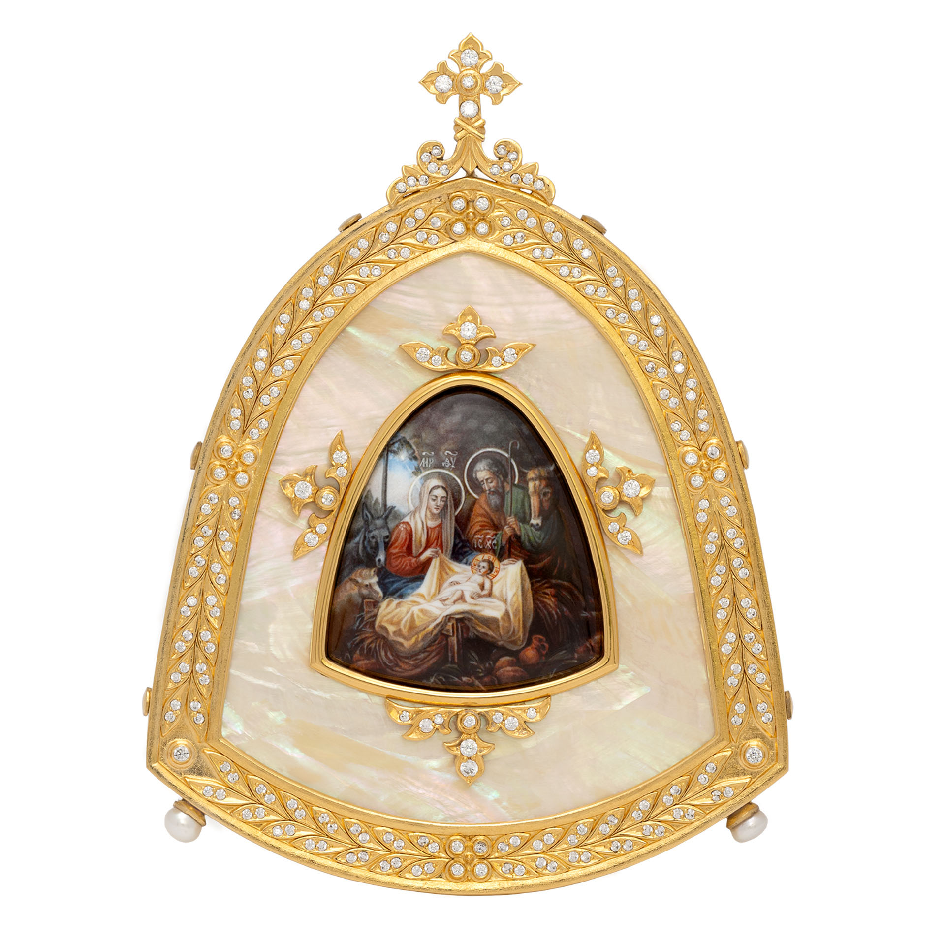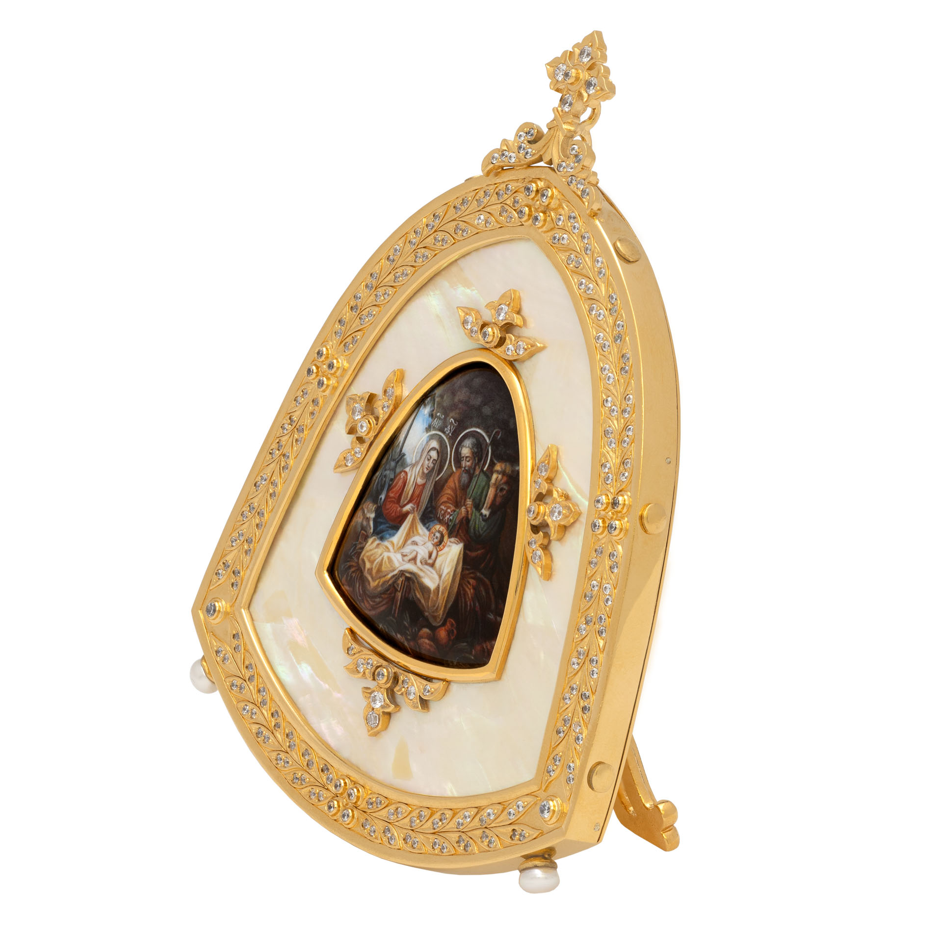 Икона настольная №225 / Фианиты серебро деколь / золочение / Рождество Христово (УИН)