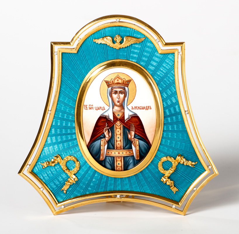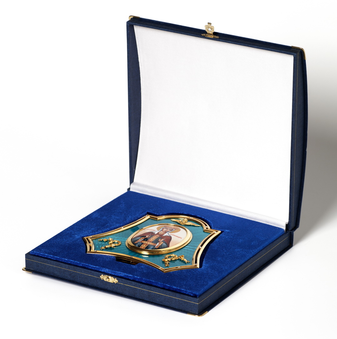 Икона настольная №32 / Фианит серебро финифть, эмаль / золочение / (УИН)