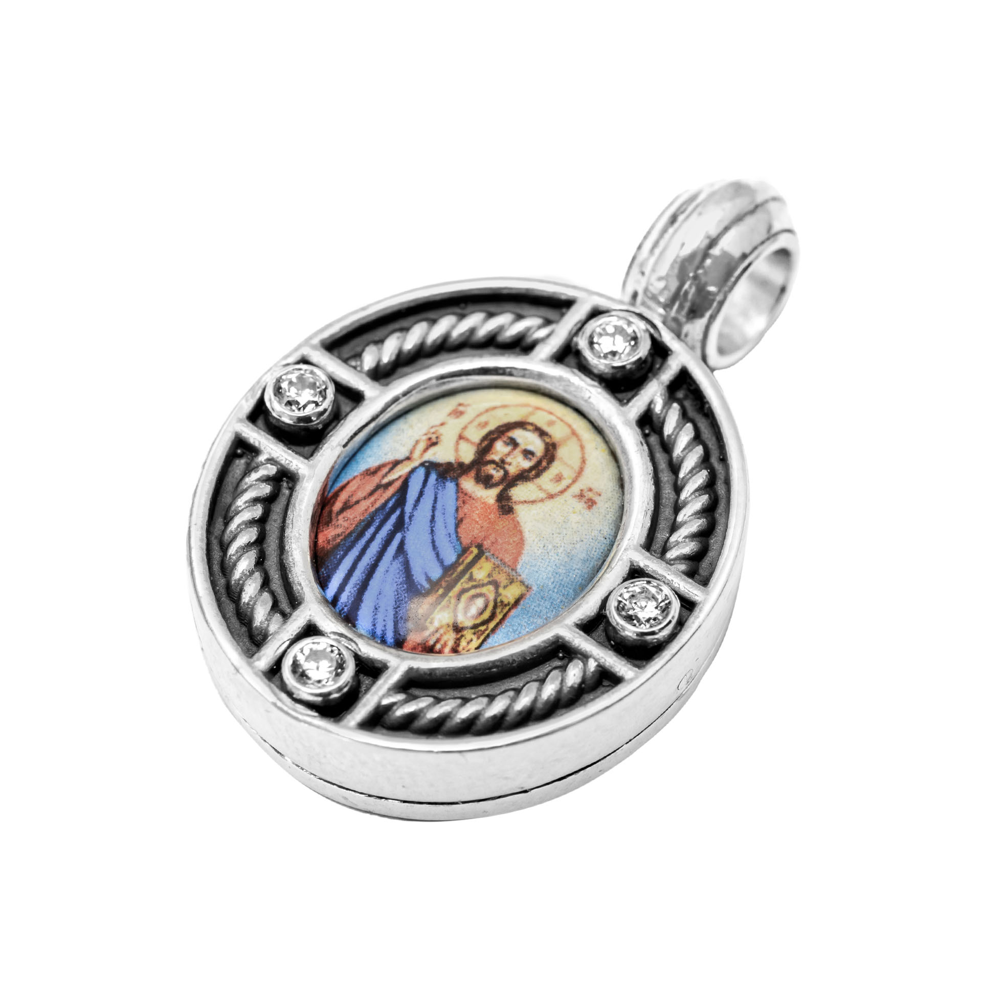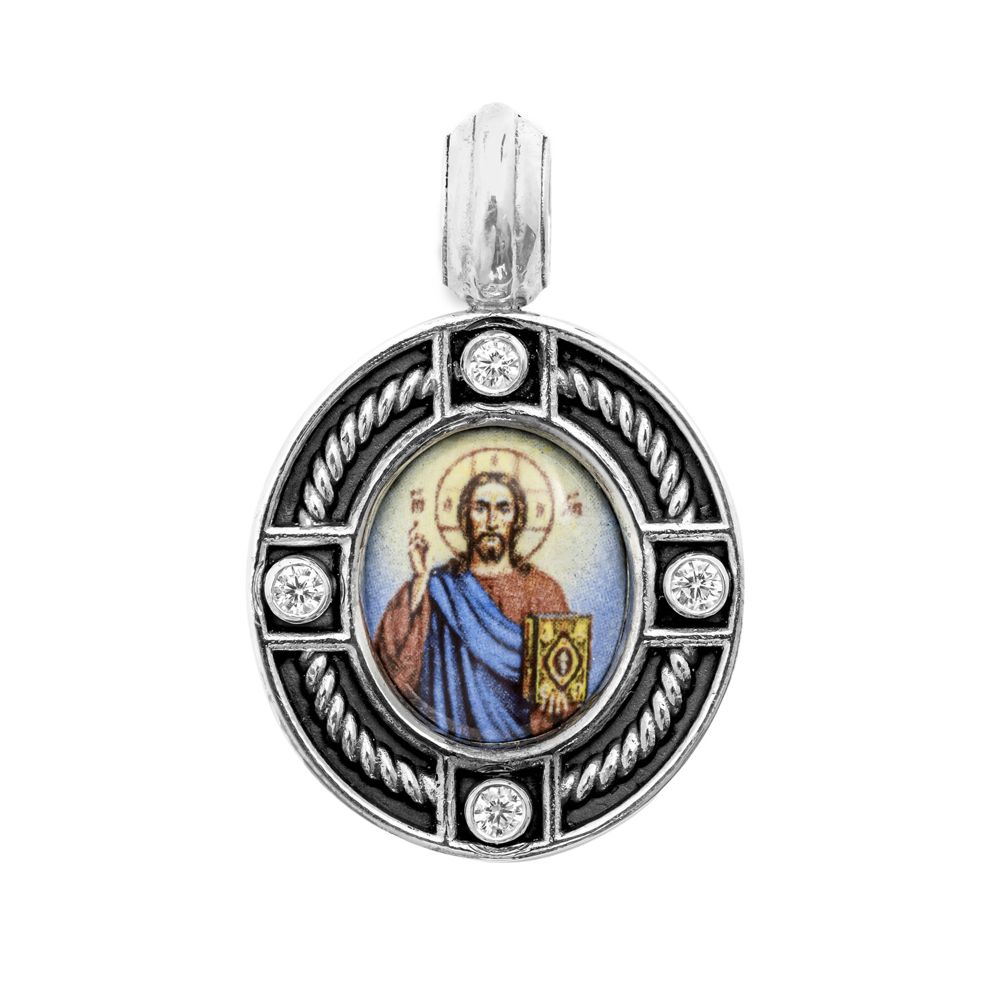 Икона нательная №39 / Фианиты серебро деколь Господь Вседержитель (УИН)