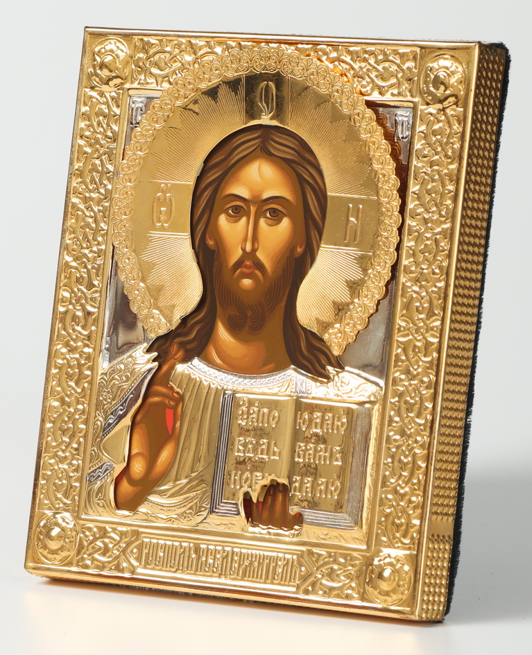 Икона штампованная 11*13 / темпера / золочение / серебро Господь Вседержитель (УИН)