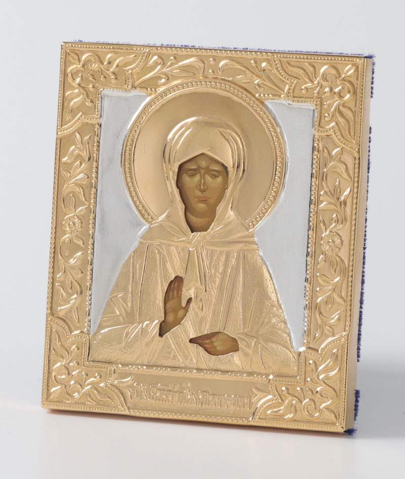 Икона штампованная 6*7 / темпера / золочение / серебро Матрона (УИН)