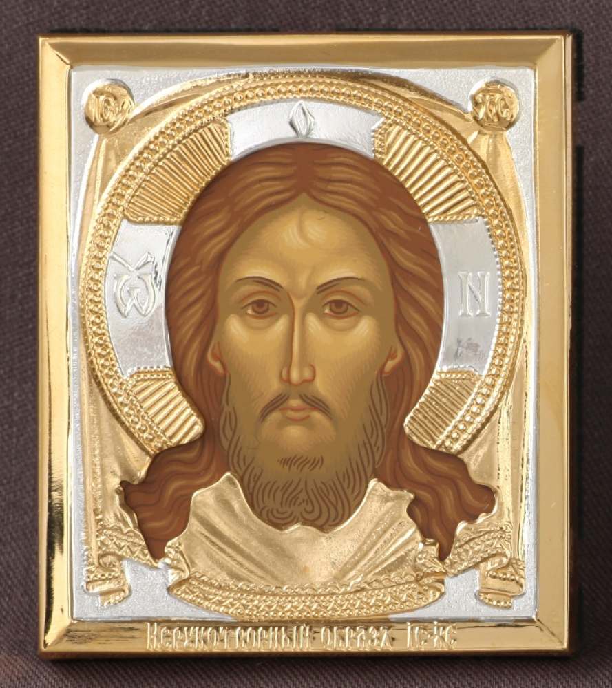 Икона штампованная 6*7 / темпера / золочение / серебро Спас Нерукотворный (УИН)