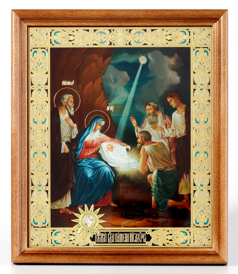 Икона в деревянной рамке №1 18х24 двойное тиснение, БЗГ, мощевик-звезда, упаковка Рождество Христово