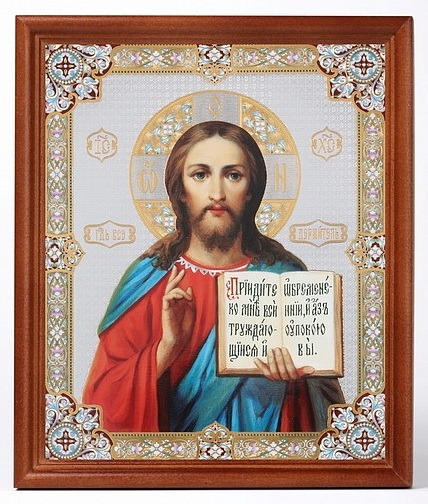 Икона в деревянной рамке №1 18х24 двойное тиснение Спаситель 14