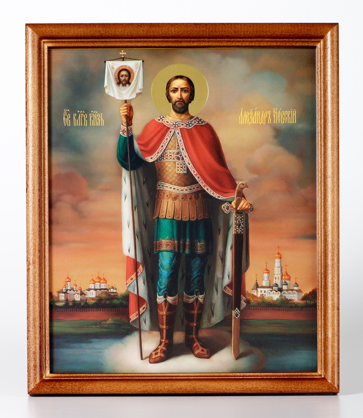Икона в деревянной рамке №1 18х24 тиснение Александр Невский (рост)