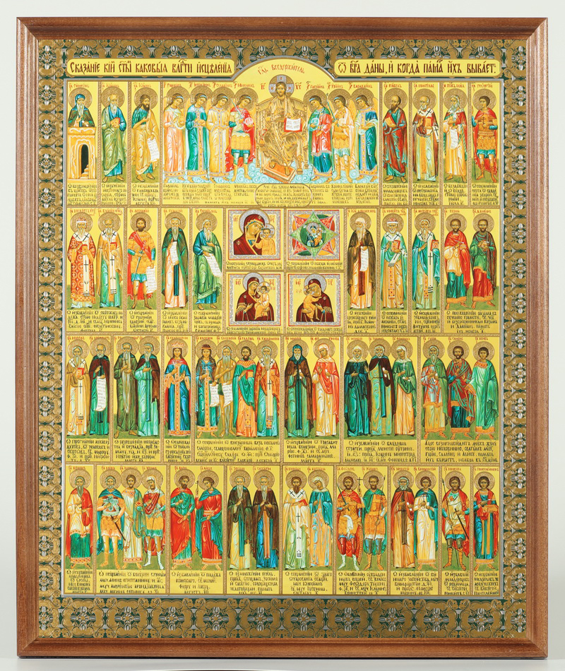 Икона в деревянной рамке №1 30х40 двойное тиснение, упаковка Собор Целителей