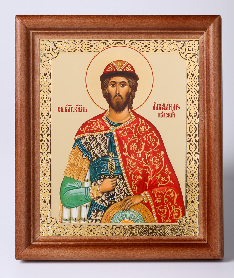 Икона в деревянной рамке 11х13 Набор с Днем Ангела, двойное тиснение Александр Невский 3