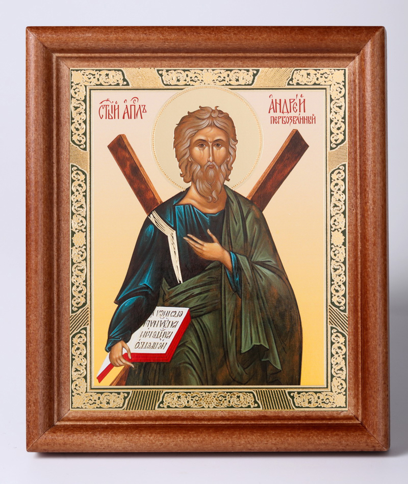 Икона в деревянной рамке 11х13 Набор с Днем Ангела, двойное тиснение Андрей Первозванный 4