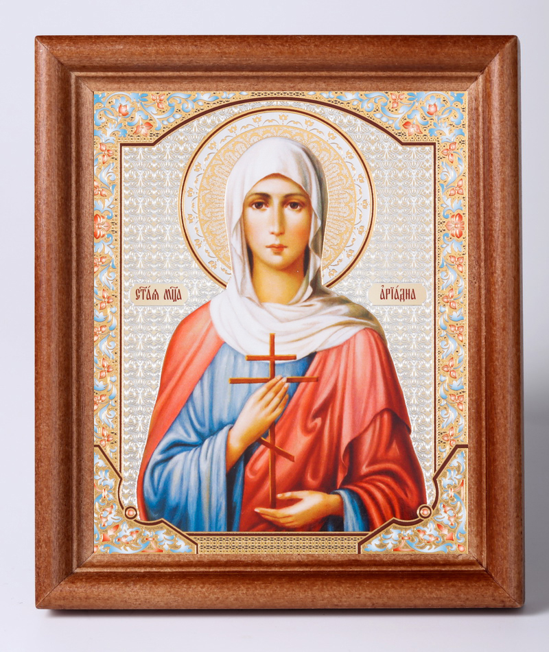 Икона в деревянной рамке 11х13 Набор с Днем Ангела, двойное тиснение Ариадна Промисская, мц. (2)