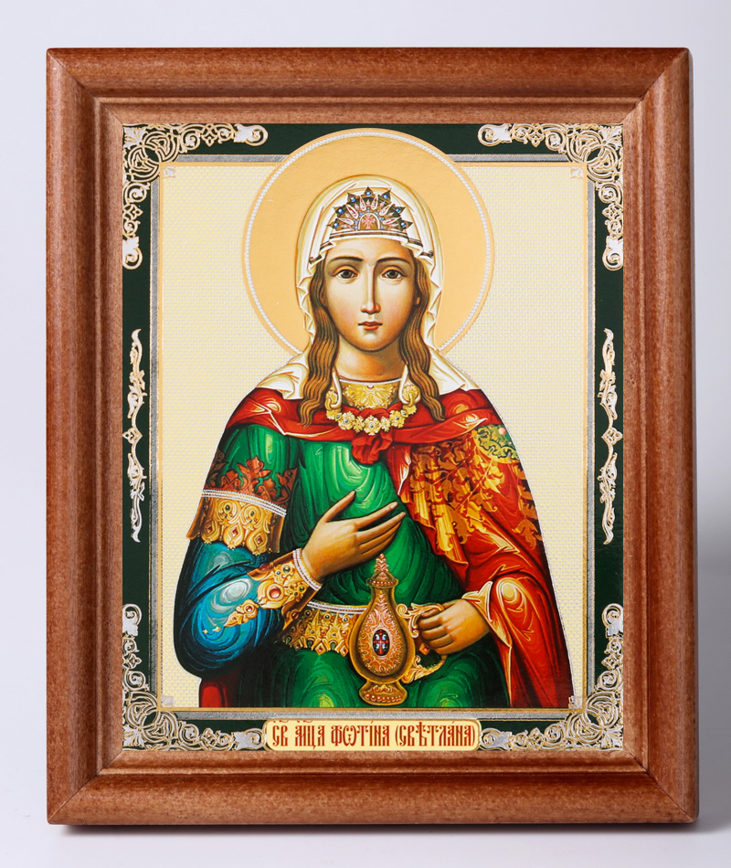 Икона в деревянной рамке 11х13 Набор с Днем Ангела, двойное тиснение Фотина 3 (Светлана)